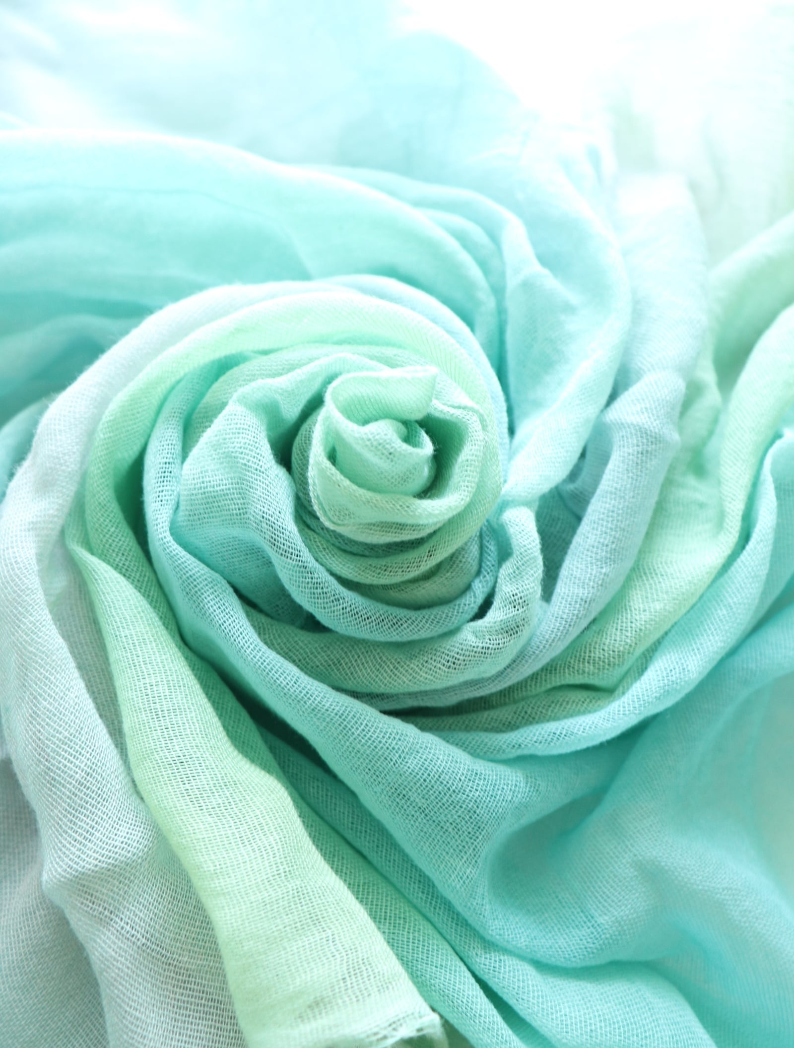 均一ではない色の揺らぎは自然の光や水、目に見えないあたたかさをイメージして静かな時間の中で肌に優しい染料で一枚一枚仕上げています。