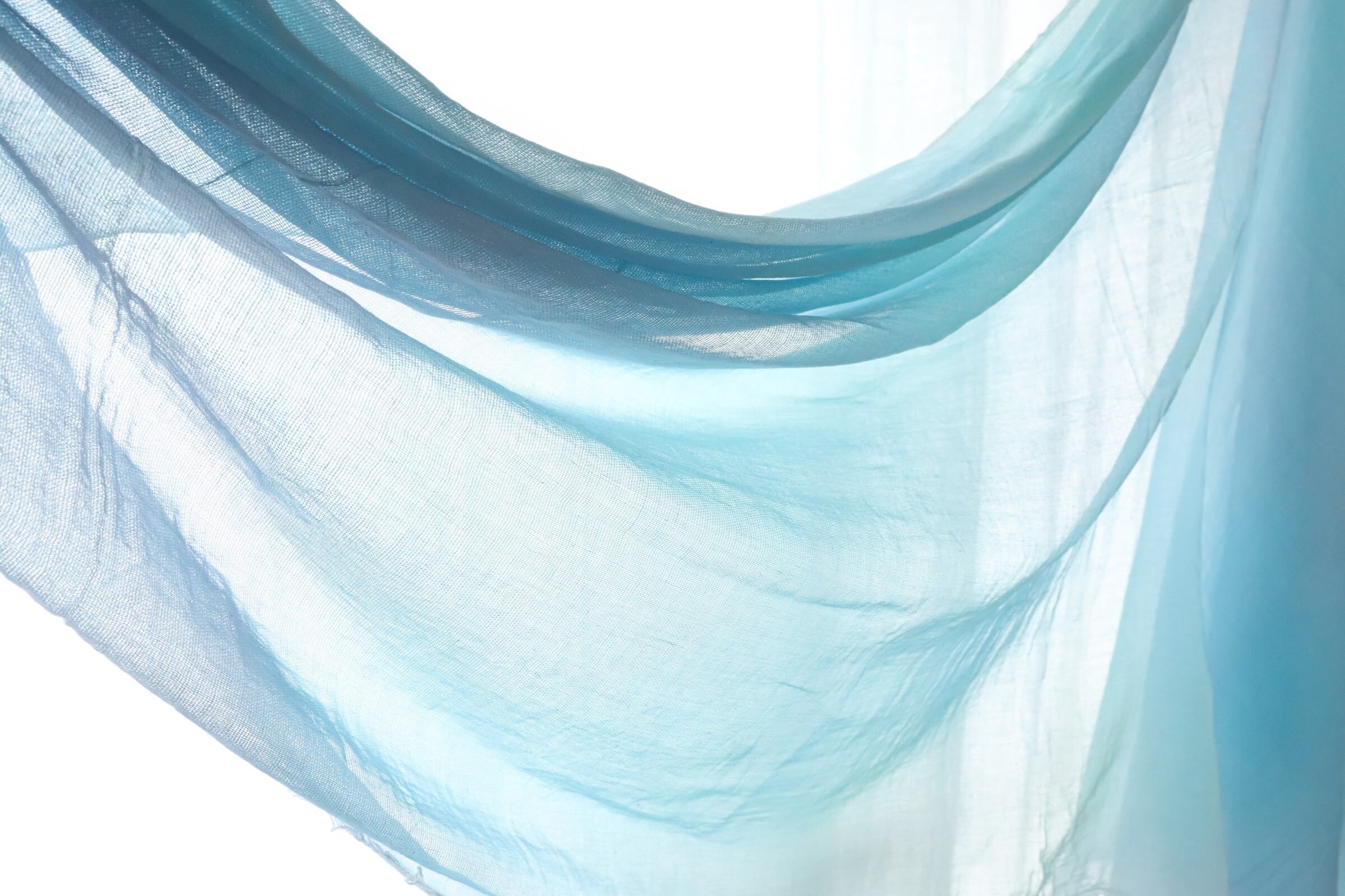 均一ではない色の揺らぎは自然の光や水、目に見えないあたたかさをイメージして静かな時間の中で肌に優しい染料で一枚一枚仕上げています。