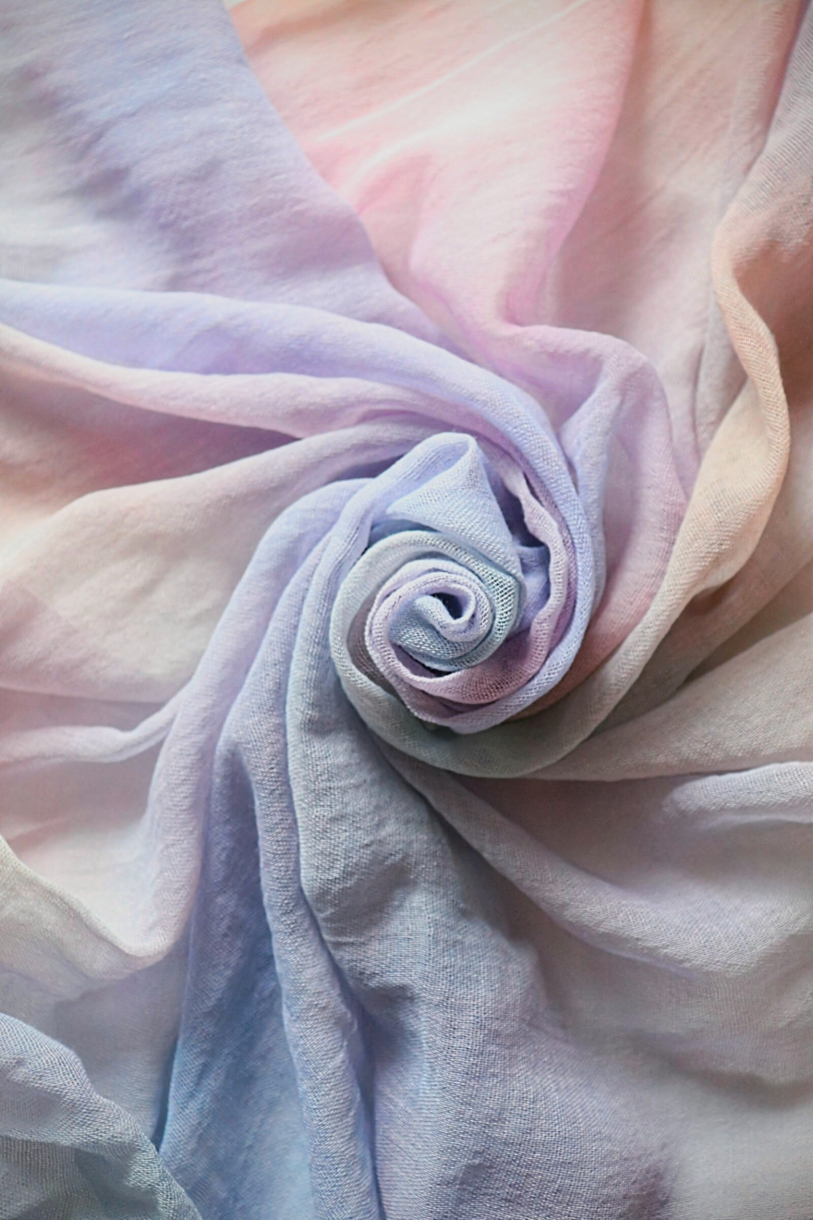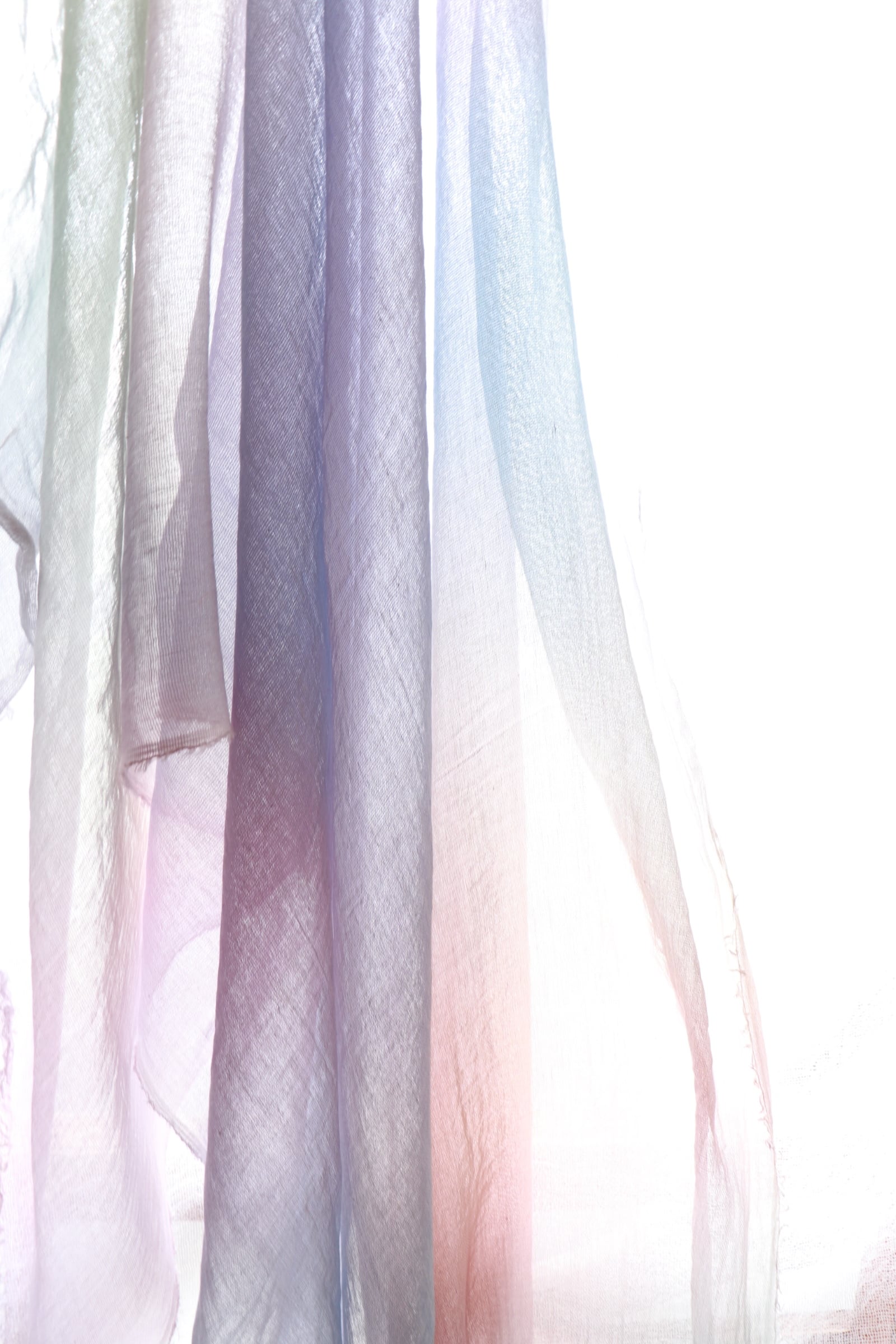 均一ではない色の揺らぎは自然の光や水、目に見えないあたたかさをイメージして静かな時間の中で肌に優しい染料で一枚一枚仕上げています。