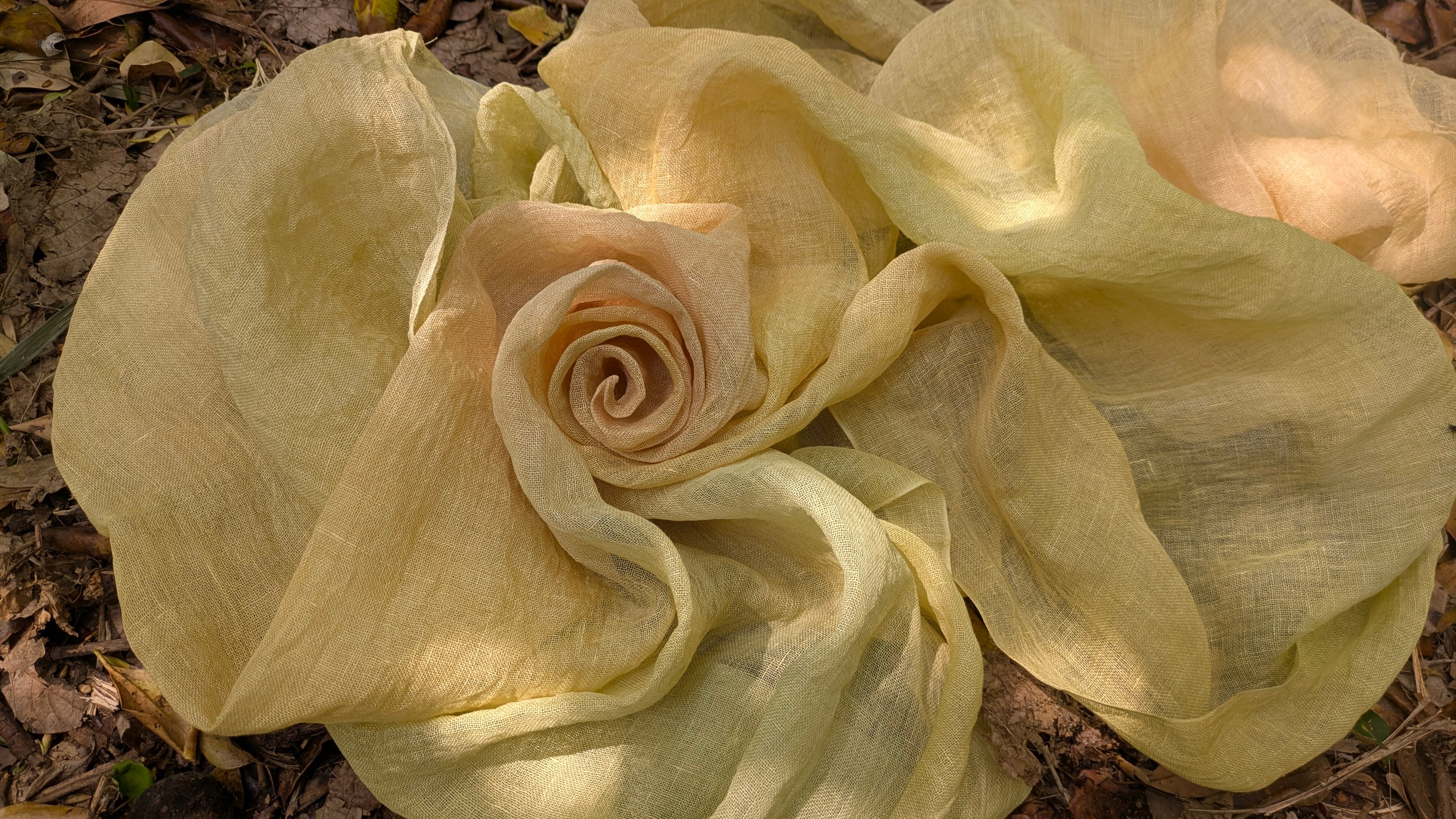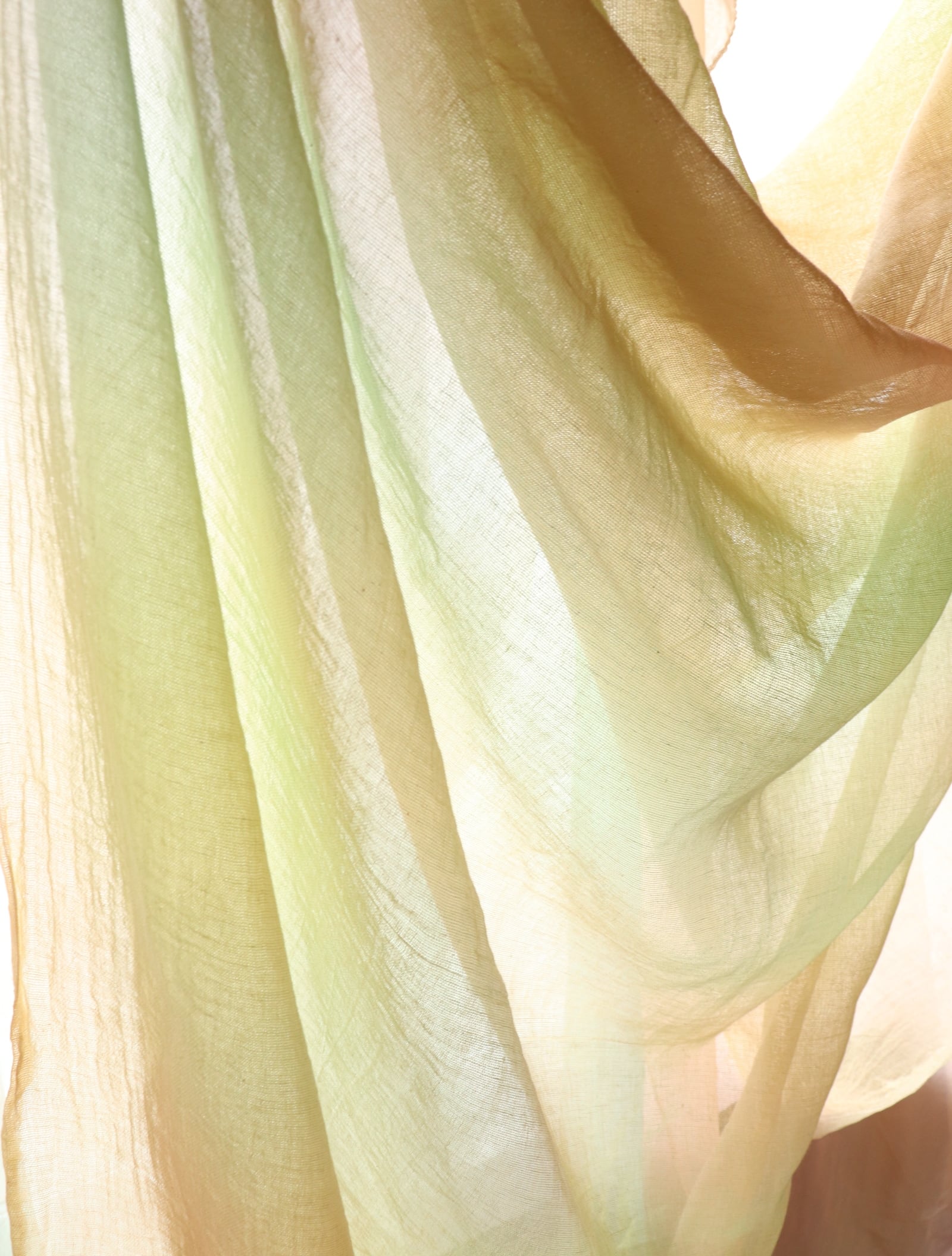 均一ではない色の揺らぎは自然の光や水、目に見えないあたたかさをイメージして静かな時間の中で肌に優しい染料で一枚一枚仕上げています。